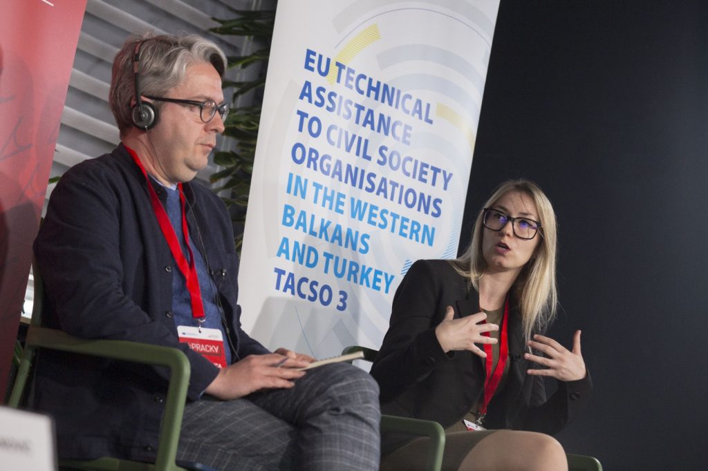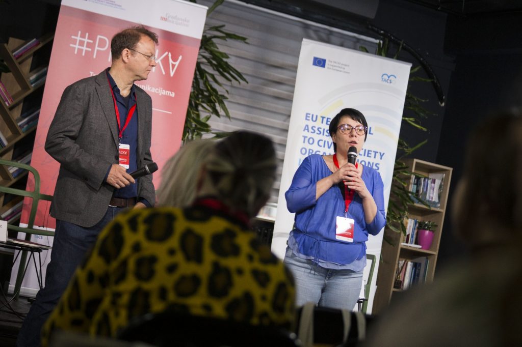 Sa kakvim protiscima se suočavaju organizacije civilnog društva, ali i kako ojačati uprkos istim, govorili su Jelena Vasić, novinarka KRIK-a, Sonja Stojanović Gajić, aktivistkinja i ekspertkinja u upavljanju sektorom bezbednosti i transformacijom konflikta, i Filip Noubel, direktor komunikacija u GDSI.