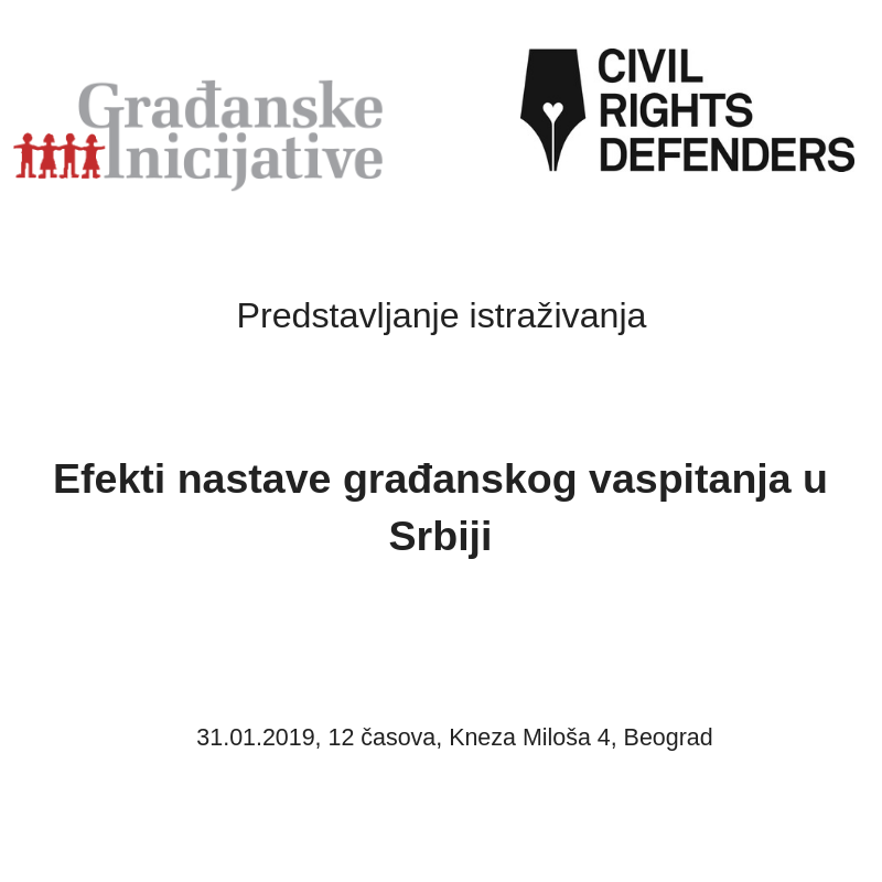 Preuzmite prezentaciju - Stavovi prema Građanskom vaspitanju Preuzmite analizu literature građanskog vaspitanja na teritoriji Republike Srbije Beograd, 31. januar 2019. godine - U okviru projekta ”Odbrana ljudskih prava u učionicama” koji su Građanske inicijative sprovodile uz podršku organizacije Civil Rights Defenders, sprovedeno je sveobuhvatno istraživanje o efektima nastave...