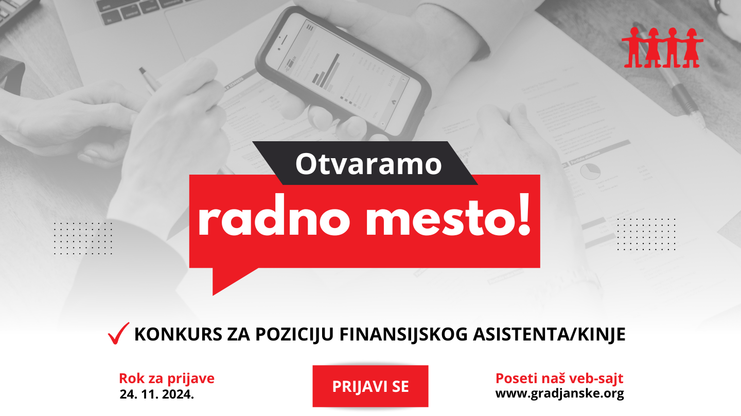 Beograd, 4.novembar 2024. Građanske inicijative imaju 28 godina dugu istoriju i tokom tog perioda postigle su brojne rezultate. Organizacija je prepoznata kao vodeća u razvoju civilnog društva, promovisanju aktivizma i stvaranju povoljnog okruženja za aktivno učešće građana u društvenim promenama. Usled potrebe za jačanjem našeg finansijskog tima,...